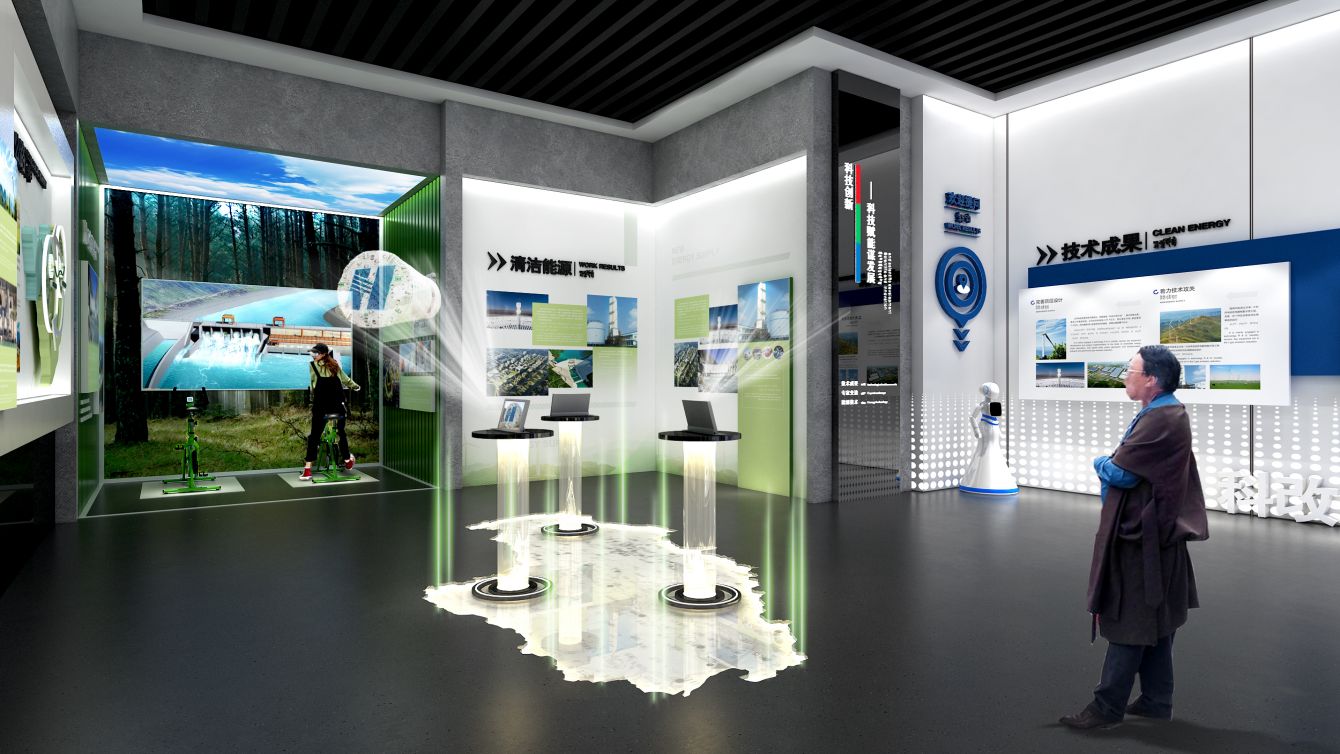 項目展示內(nèi)容靈活且應(yīng)變宣導(dǎo)科學(xué)技術(shù),強化區(qū)域科技優(yōu)勢,以參與、體驗、互動性的展品及輔助性展示手段,打造具有鮮明特色的水電企業(yè)科技展廳設(shè)計,使企業(yè)擁有更強的吸引力和市場競爭力。展廳設(shè)計公司對每個展項深入挖掘,運用數(shù)字多媒體凸顯目對于水電業(yè)及能源未來的發(fā)展探索。