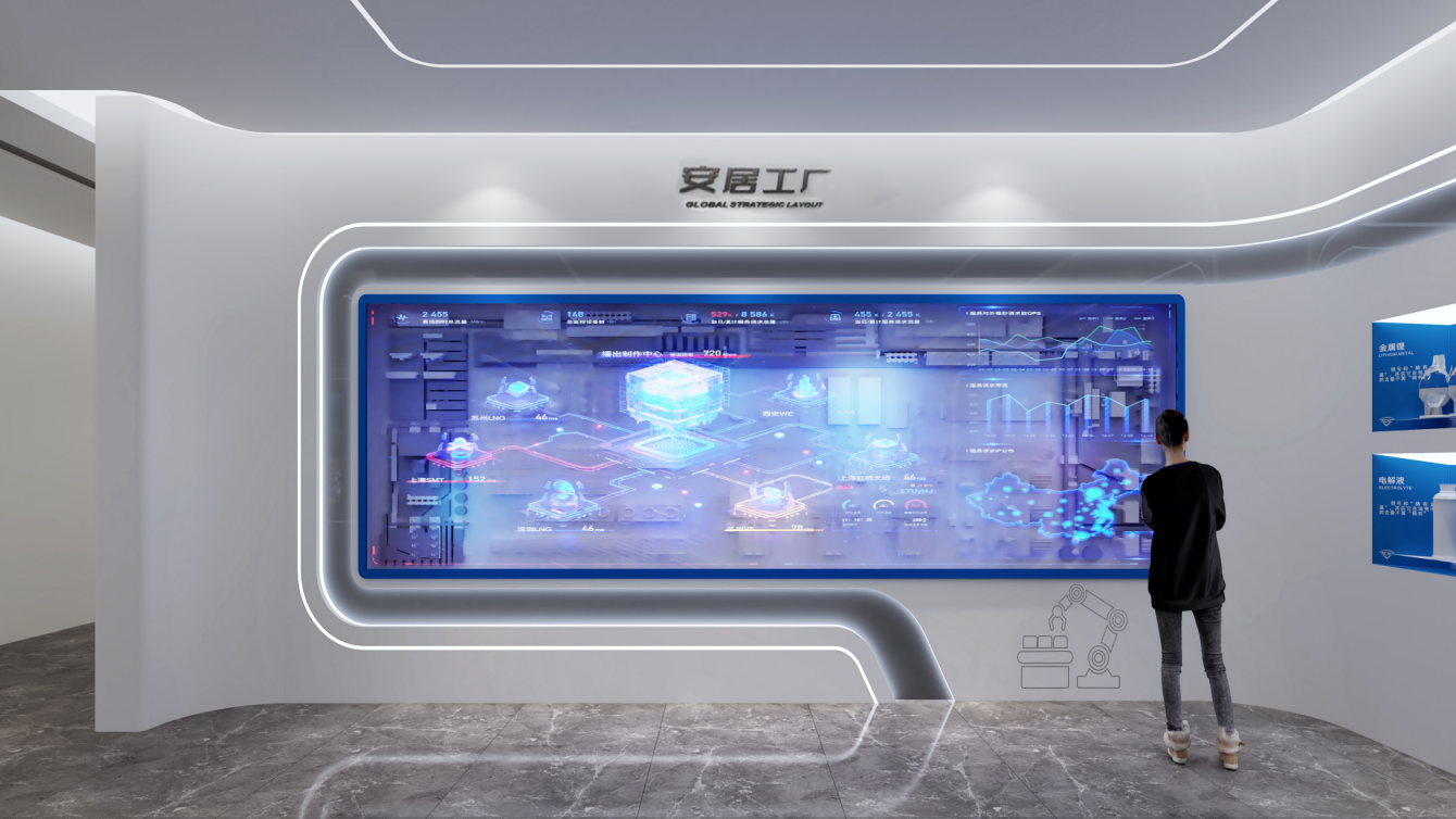 項(xiàng)目采用先進(jìn)的數(shù)字化技術(shù),全面展現(xiàn)了安居工廠的現(xiàn)代化形象。展廳設(shè)計(jì)簡(jiǎn)潔大氣,彰顯了天齊鋰業(yè)的雄厚實(shí)力和廣闊前景。通過(guò)高科技手段,我們將生產(chǎn)流程、管理系統(tǒng)以及產(chǎn)品質(zhì)量全面進(jìn)行展示,使參觀者感受整個(gè)工廠運(yùn)轉(zhuǎn)的高效、精準(zhǔn)。在這個(gè)充滿活力和創(chuàng)新的領(lǐng)域,我們譜寫著鋰產(chǎn)業(yè)的恢宏篇章。