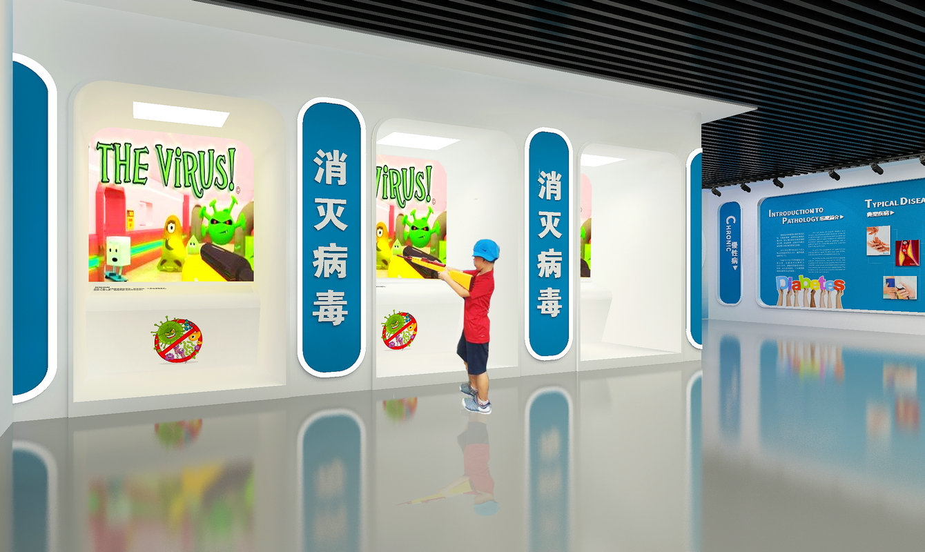 展廳以疾病防控為根,以提升廣大公眾健康生活意識為魂,通過信息的傳遞與接收,讓展廳可知、可感、可看,以豐富的專業知識、藝術的造型、科技的手段等表現重點病、病媒生物的防控并逐步演化為健康生活方式的建立,為受眾打造一次與眾不同的健康探索之旅。