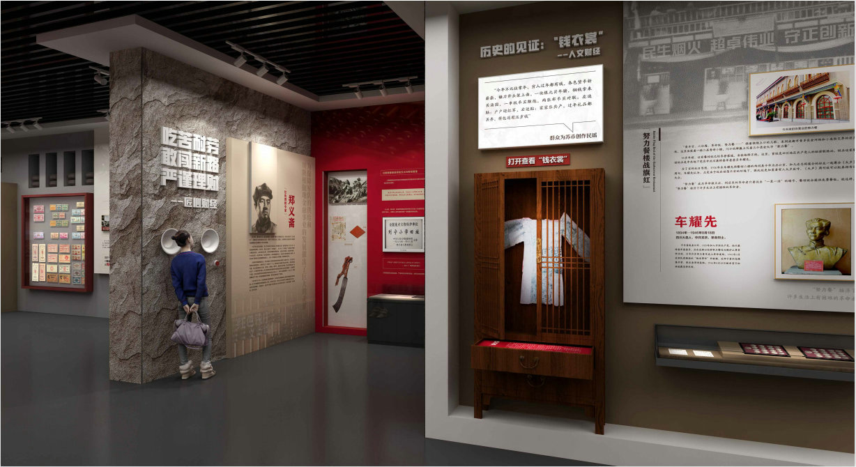 以中國共產黨百年黨史、中國財經史為依據,以財經專家團隊為依托進行整個展館的題材選擇,以特色財經故事、典型財經人物故事為亮點,普及紅色財經知識。以紅色財經為立足點,以四川為亮點進行展陳亮點化呈現。傳統展陳手法與多媒體數字技術結合,打造可看可觸可感的互動型展廳。