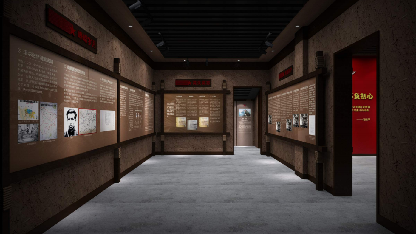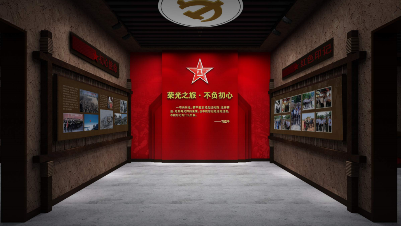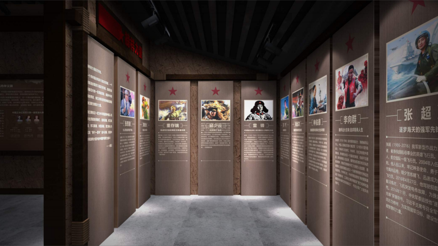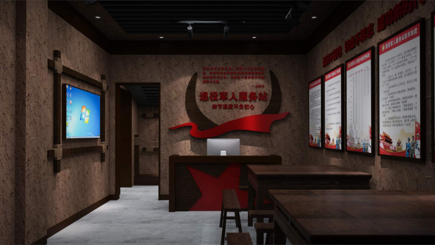 項目為退役軍人提供優質的展示服務。通過嚴謹、穩重、理性的設計風格,凸顯紅軍第一村的榮耀與歷史,同時展現退役軍人的榮譽與貢獻。